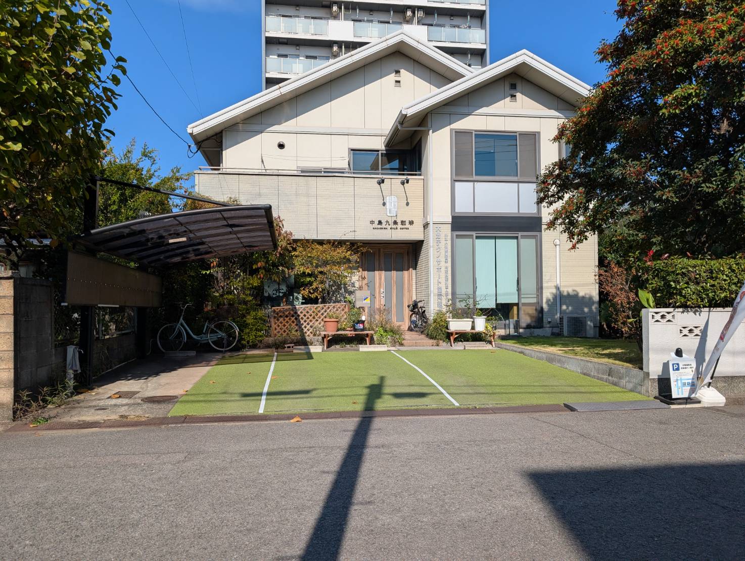 中島九条珈琲は、大分市中島東の閑静な住宅街に佇む自家焙煎珈琲専門カフェです。店内は一軒家を改装した落ち着いた雰囲気で、1階が注文カウンター&物販、2階にイートインスペースがあり、大きな窓から大分川の景色を眺めながらゆったり過ごせる空間が特徴です。コーヒー豆・焼き菓子・ギフト商品も販売しており、お土産やプレゼントとしての人気も高まっています。