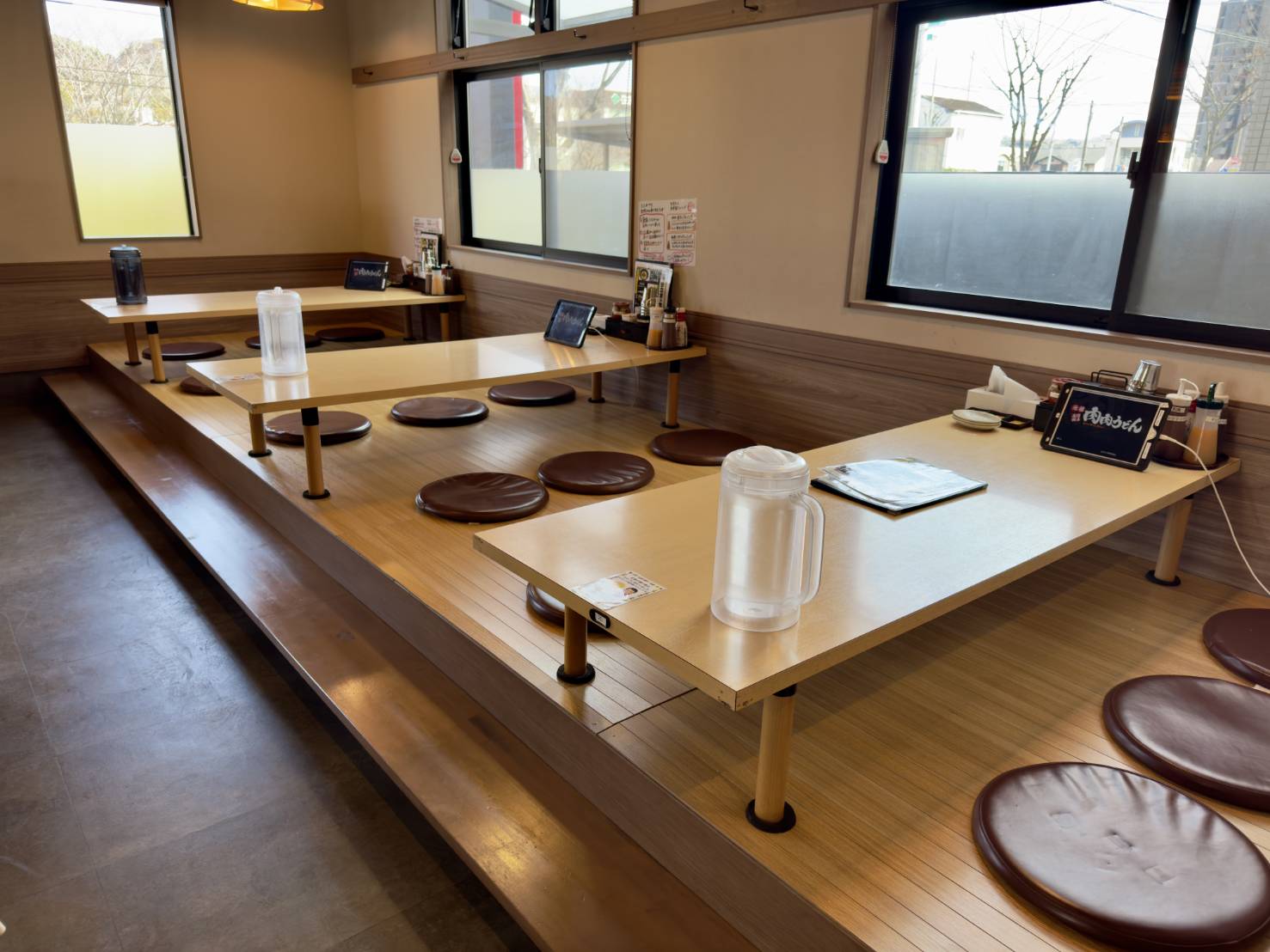 広々とした店内はカウンター席・テーブル席・座敷席があり、全席タブレット注文に対応。ベビーカーでもそのまま入店できる段差のない造りで、3人並びのカウンター席ではパパ・ママの間にベビーカーをそのまま入れて食事することも可能です。